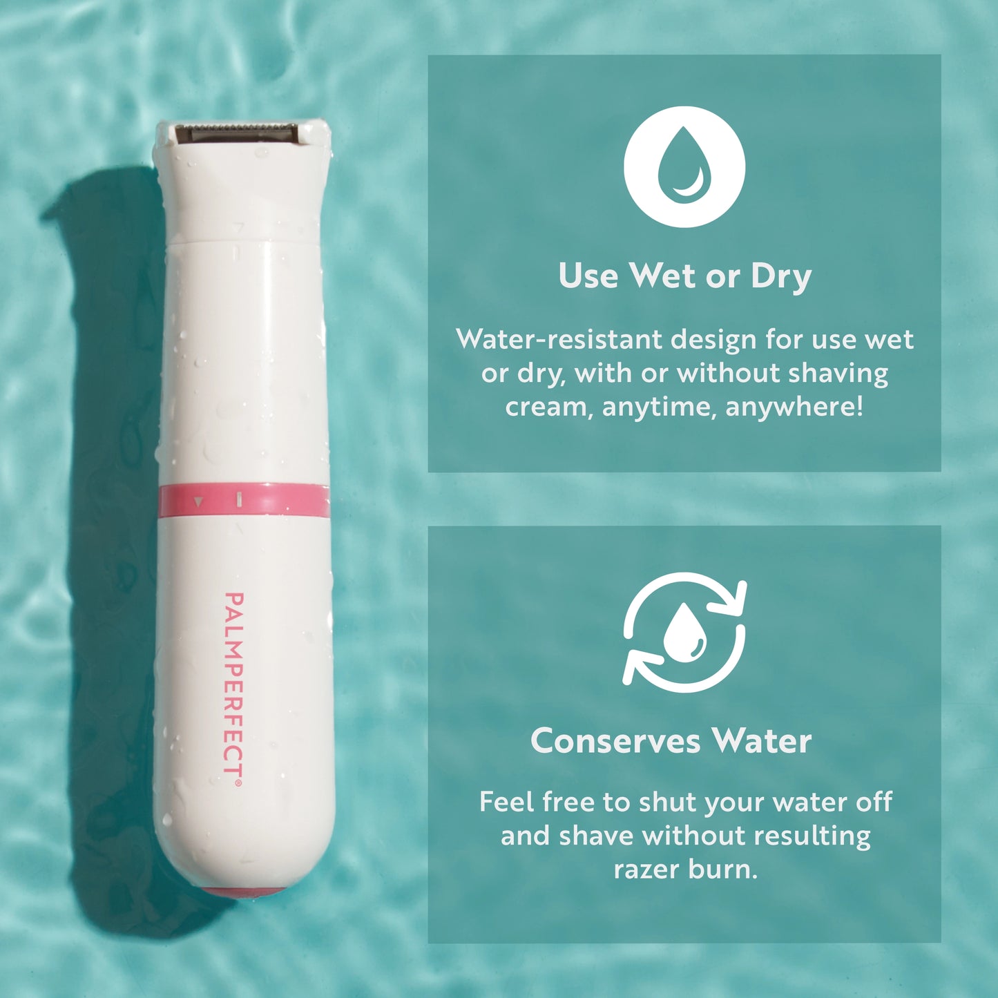 Perfect for your on-the-go grooming needs, the wet/dry PALMPERFECT® Bikini Trimmer can be used on any part of the body--including the pubic region--to safely achieve a comfortable close shave. The specially designed ergonomic grip allows the trimmer to effortlessly glide over the skin making it easy to use for extended periods. Say goodbye to irritating nicks and cuts and hello to beautiful, bikini-ready skin year-round!