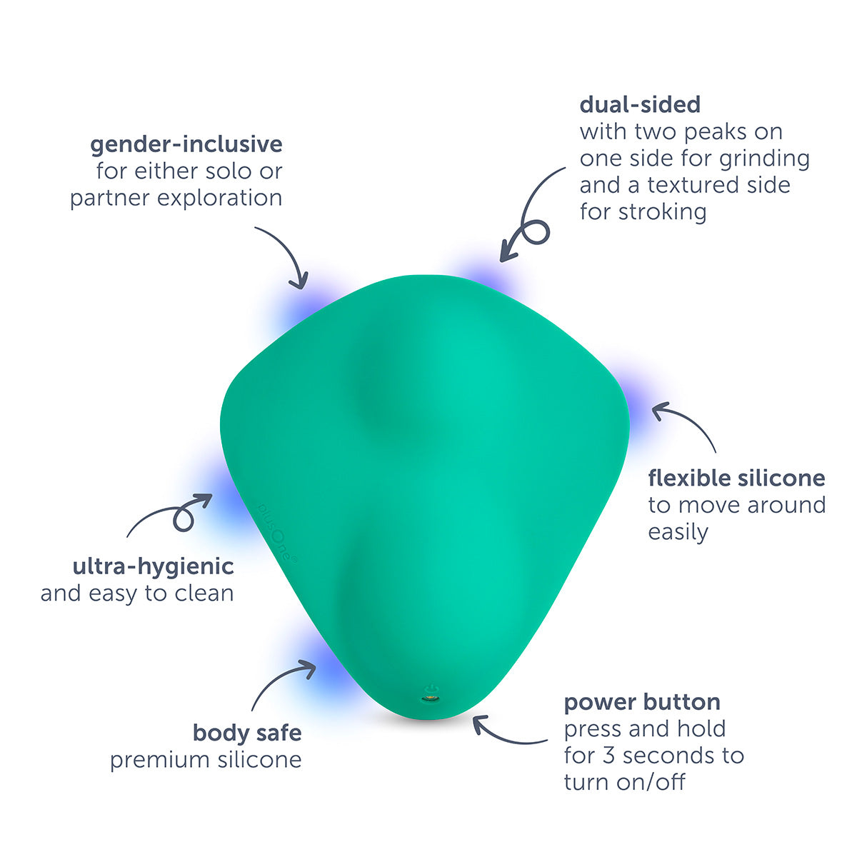 Our plusOne® 2-in-1 grinding massager is a shareable device that's compatible with all bodies. Lay it flat for grinding or humping, then roll it up to use as a stroker. This grinding toy is perfect when sitting solo or when you want to add something extra with a partner. One side features a double-peak design for comfortable and stimulating grinding, and the other has a ribbed texture for stroking. Not only is this grinding toy double-sided, it also has a vibrating motor that offers 10 different vibe modes. Keep this dual-sided staple close by for your next adventure.
